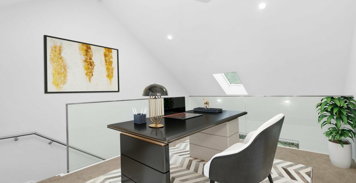 – Loft level room ideal for home office or possible 3rd bedroom with concealed storage area
